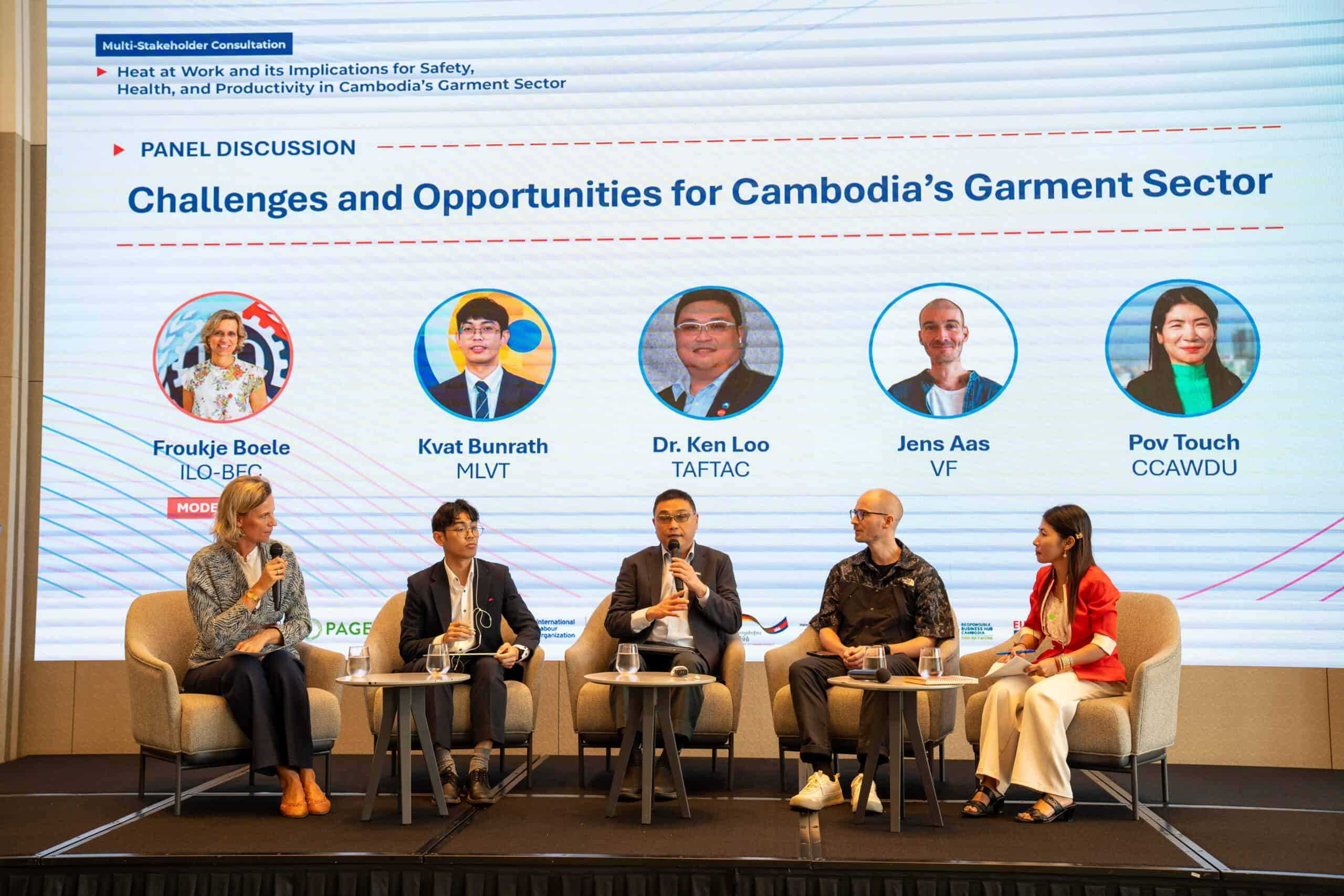 Phnom Penh, 19 January 2026 – Policymakers, employers, workers’ representatives, international brands, researchers, and development partners gathered for a Multi-Stakeholder Consultation on “Heat at Work and its Implications for Safety, Health, and Productivity in Cambodia’s Garment Sector”, organized by PAGE and hosted by Cambodian Ministry of Labour and Vocational Training (MLVT). It marked an important step toward strengthening Cambodia’s policy response to rising workplace heat risks.